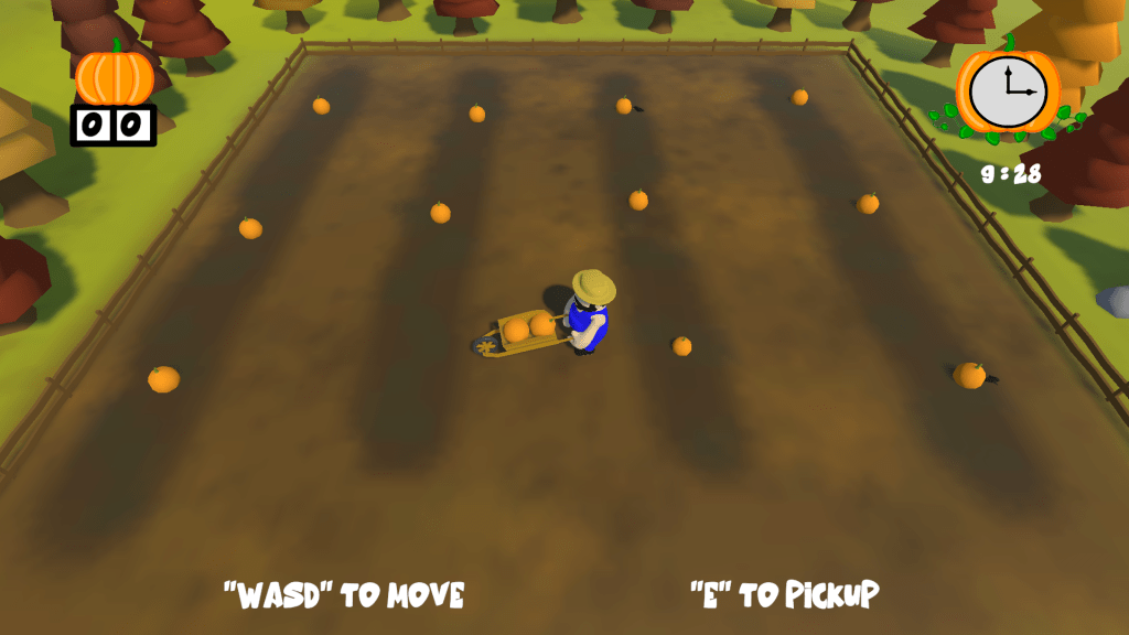 Pumpkin Plunder is a game where you play as a farmer at the end of the pumpkin season. Collect as much pumpkin as you can before the season ends. Watch out for crows, because they will eat your pumpkin. This game is a submission for Cozy Fall Jam 2023 and was made within 3 days.